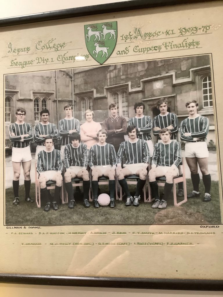 Back in the mists of time, in my second year, I was the captain of the Jesus soccer team of 1969/70. We had a very good side and managed to win the Division One title by being unbeaten, while our deadly rivals, Teddy Hall, lost to, I think, Exeter.