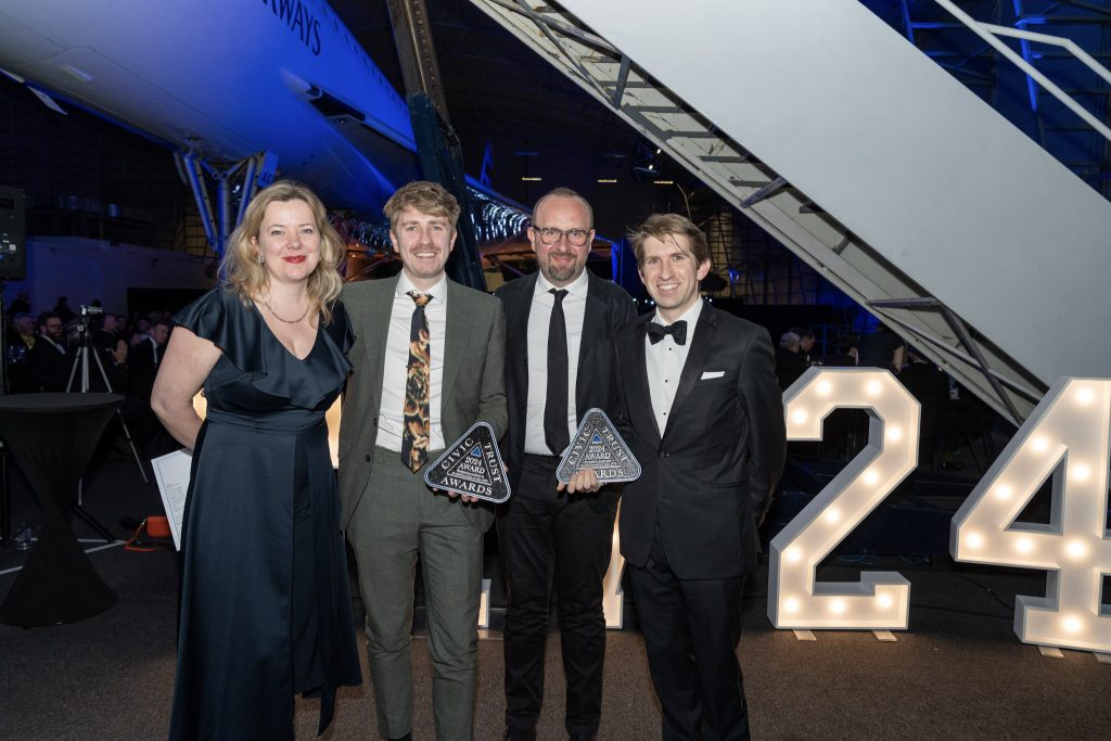 There to collect the award at the CTA Ceremony in Manchester were MICA architects Mandy Franz and Stuart Cade, along with colleagues Jonathan Evans and Jacob Spence.